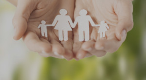 womans hands with paper man family