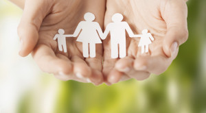 womans hands with paper man family