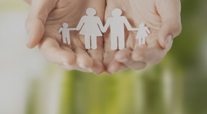 womans hands with paper man family